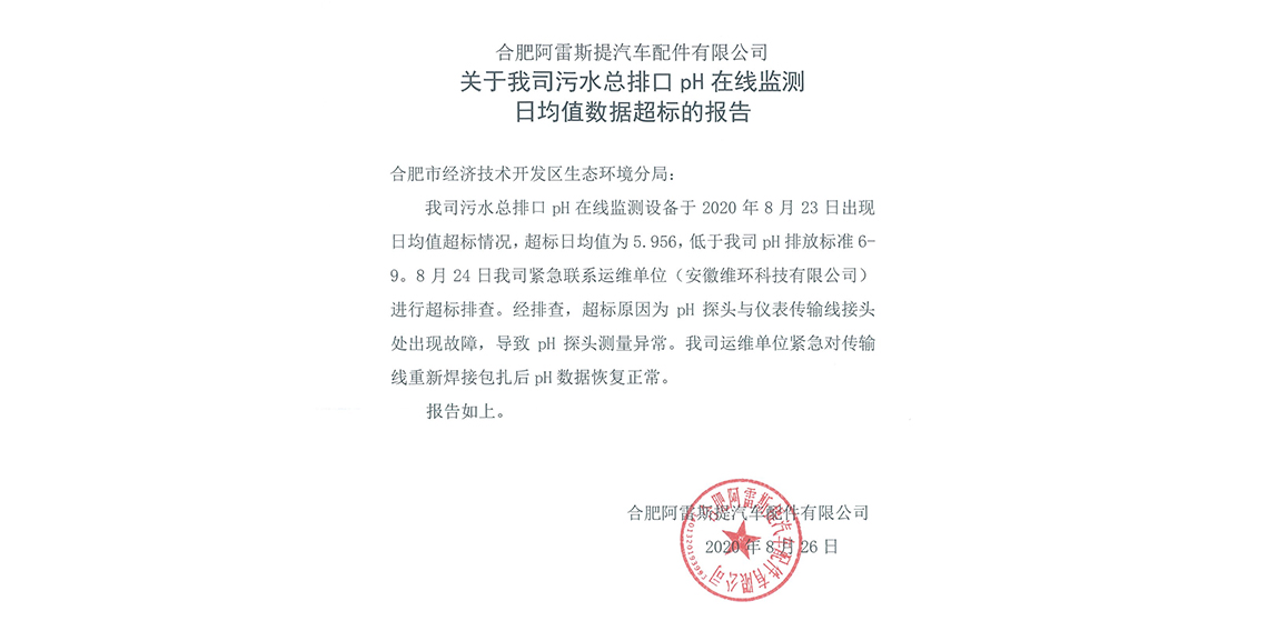 關(guān)于我公司廢水總排口pH在線監(jiān)測儀器數(shù)據(jù)超標的報告
